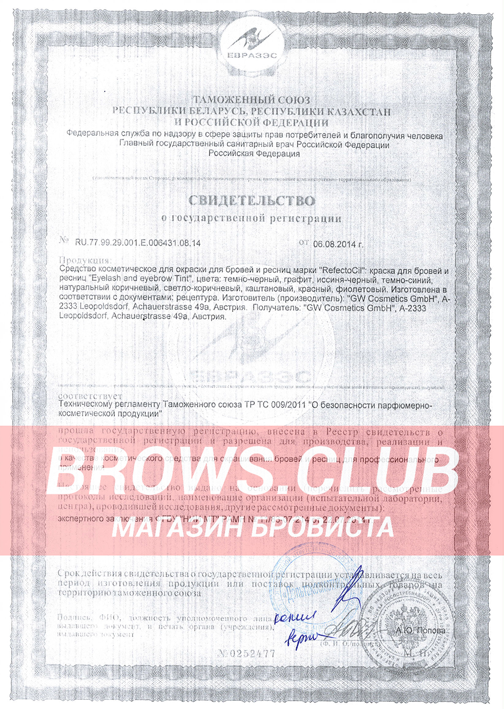 RefectoCil (краска для бровей и ресниц) - свидетельство о государственной на все краски